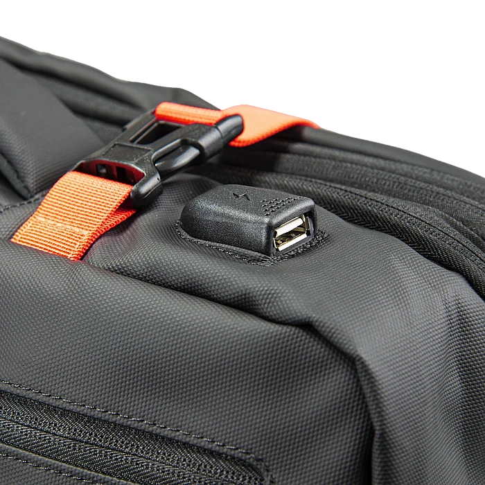 - יציאת USB-A חיצונית לטעינת סמארטפון/טאבלט בעזרת Power Bank (אינו כלול) מתוך התיק.