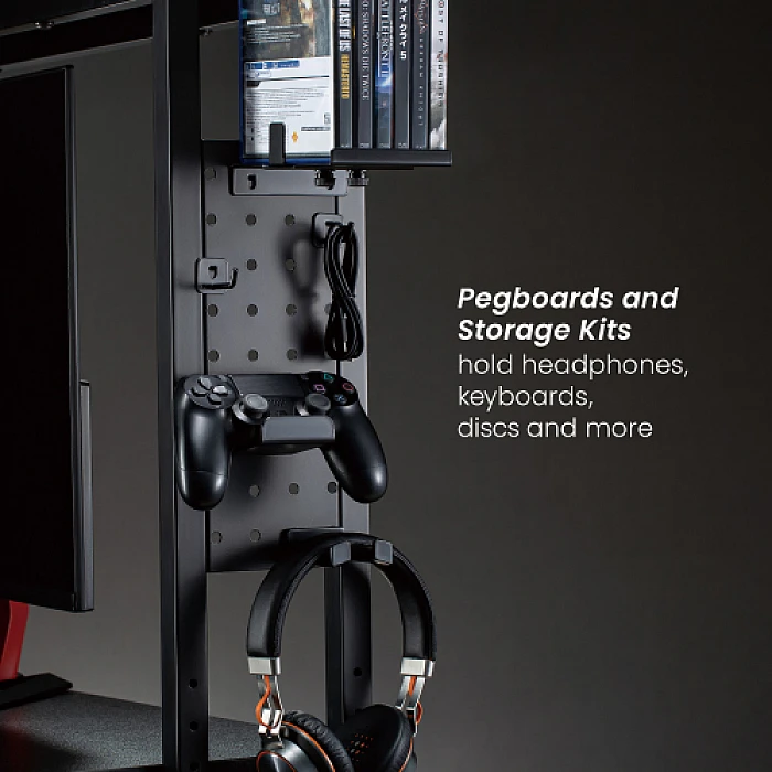 לוח יתדות ואביזרי אחסון מודולריים לאוזניות, מקלדות, דיסקים ועוד.