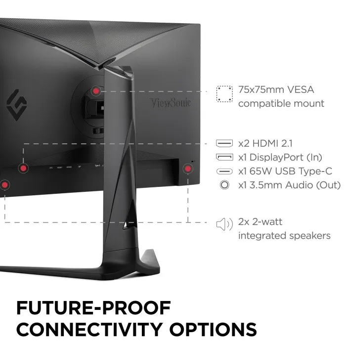 בנוסף, המסך מצויד בשני חיבורי HDMI 2.1, חיבור DisplayPort 1.4 ו-USB-C לחיבוריות מתקדמת ונוחה בין מחשבים, קונסולות ומכשירים נוספים. העיצוב הארגונומי מאפשר התאמה מלאה לגובה, סיבוב והטיה, וכולל טכנולוגיית EyeProTech להפחתת מאמץ עיניים-לשימוש ממושך ונוח במיוחד.