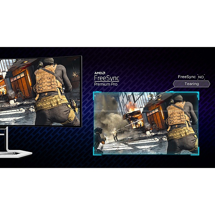 - תנועה וחלקות: FreeSync™ Premium Pro, AdaptiveSync, VESA ClearMR 13000.