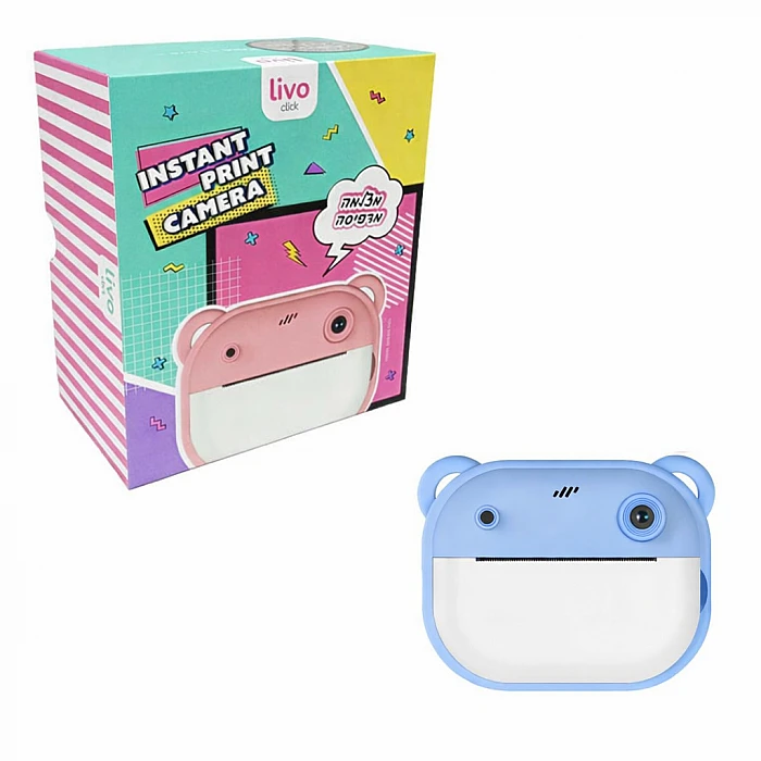 מצלמה דיגיטלית לילדים מבית LIVO שמשלבת צילום עם הדפסה מיידית על נייר תרמי ייעודי – ללא צורך בדיו. הילדים מצלמים רגעים מיוחדים ומקבלים תמונה מודפסת במקום, לחוויית יצירה מהנה שמתאימה לבית, טיולים, ימי הולדת ומתנה.