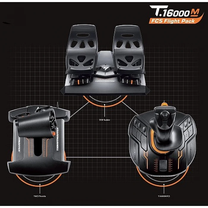 חבילת T.16000M FCS ג'ויסטיק+מצערת+דוושות היגוי THRUSTMASTER