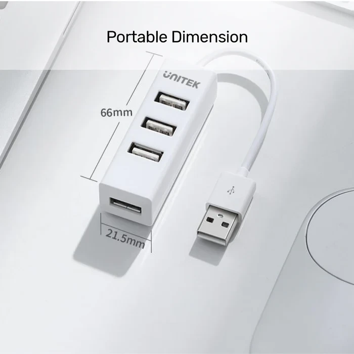 UNITEK רכזת USB 2.0 עם 4 יציאות (Y-2146) – Cloud White
