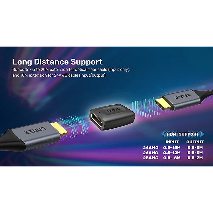 מצמד ה-HDMI 4K של UNITEK מאפשר לחבר שני כבלי HDMI להארכה נקייה ואמינה, עם תמיכה ב-4K@60Hz,